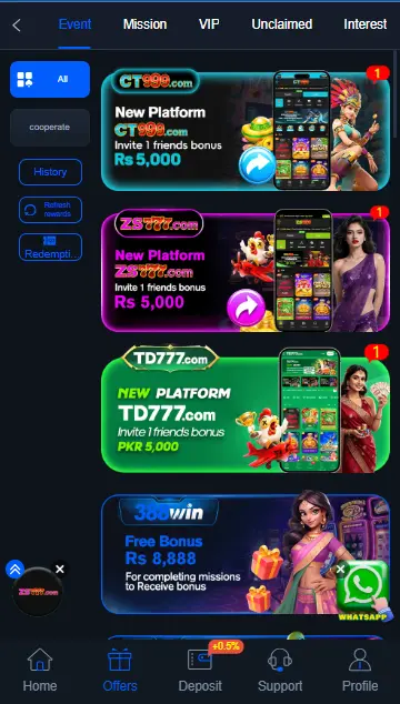 Its transaction system is safe and secure allowing users to deposit and withdraw money through multiple payment methods. When a user joins the platform for the first time they can receive a welcome bonus. The app also includes a referral program where users can invite others and earn rewards.