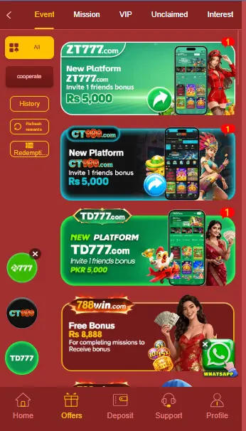 The platform supports multiple payment methods like Easy Paisa Jazz Cash and bank transfer, making deposits and withdrawals easy and fast.