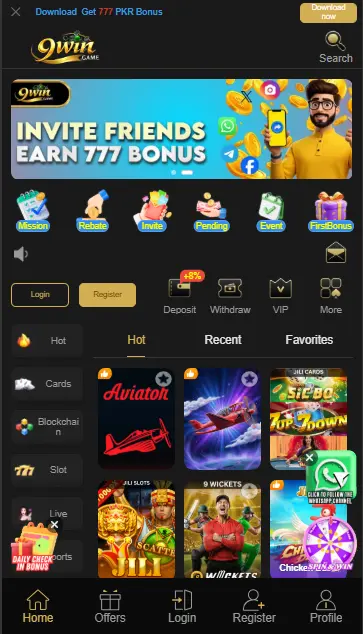 9Win Game is a new online casino app popular in Pakistan. It has a simple and user friendly interface so both new and experienced players can easily register and create an account. The platform runs smoothly and has many games where users can choose their favorite and win real money.