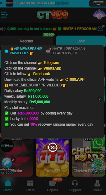 CT999 Game is a new gaming platform for online casino game lovers. People who enjoy online casino games can play on this platform and earn lakhs of rupees daily, which is why it is very popular in Pakistan. This platform offers many different types of games, and players can select and play any game they like at any time.