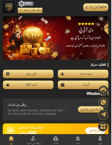 Furthermore, the app uses a secure payment system and safe transactions to protect user data and funds. It also offers an affiliate program referral system where players can invite friends using a referral link and earn bonus rewards and commission when they join. Besides that, H2 provides multiple promotions such as welcome bonus, daily bonus, and special rewards, which help increase earning chances. Additionally the platform has 24/7 customer support service, so users can get instant assistance whenever they face any problem.