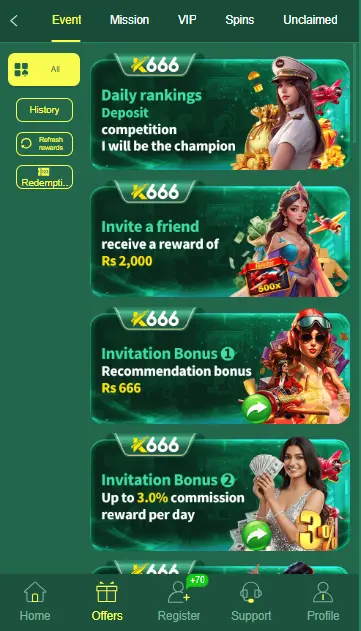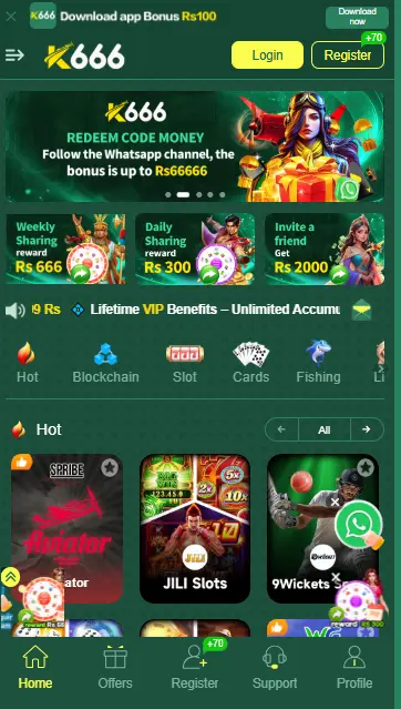 K666 Game is an online casino game that is trusted by millions of people because it provides a real opportunity to earn real money. That is why it has become very popular in Pakistan. One special feature of this platform is that it offers free bonuses and free spins to its users.