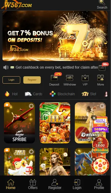 W567 Game is an online casino gaming platform that has become popular in Pakistan as well as around the world. It has gained many users in a short time where players can play different games and get a chance to win real money. The interface of this app is simple and user friendly which allows both new and old players to easily register and create their accounts.